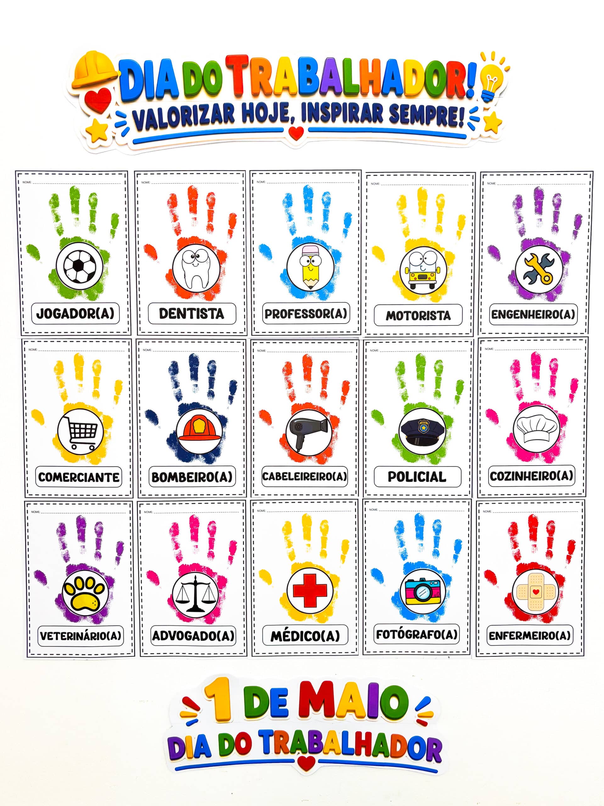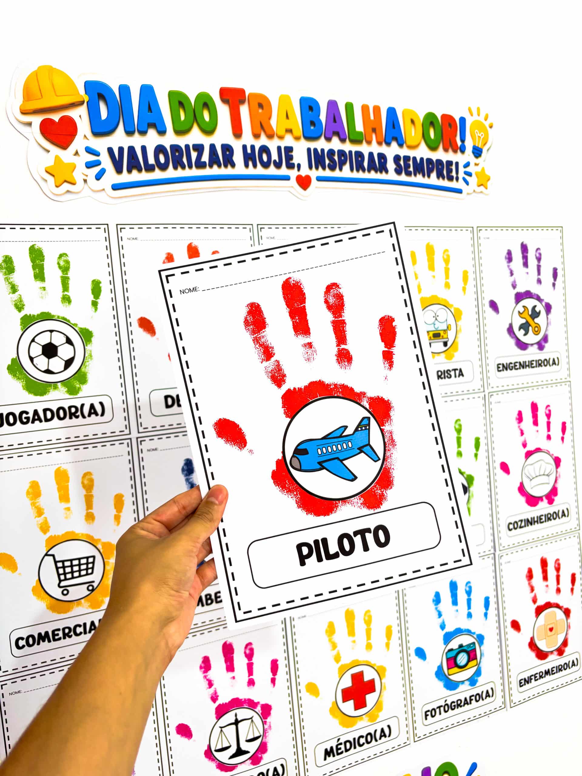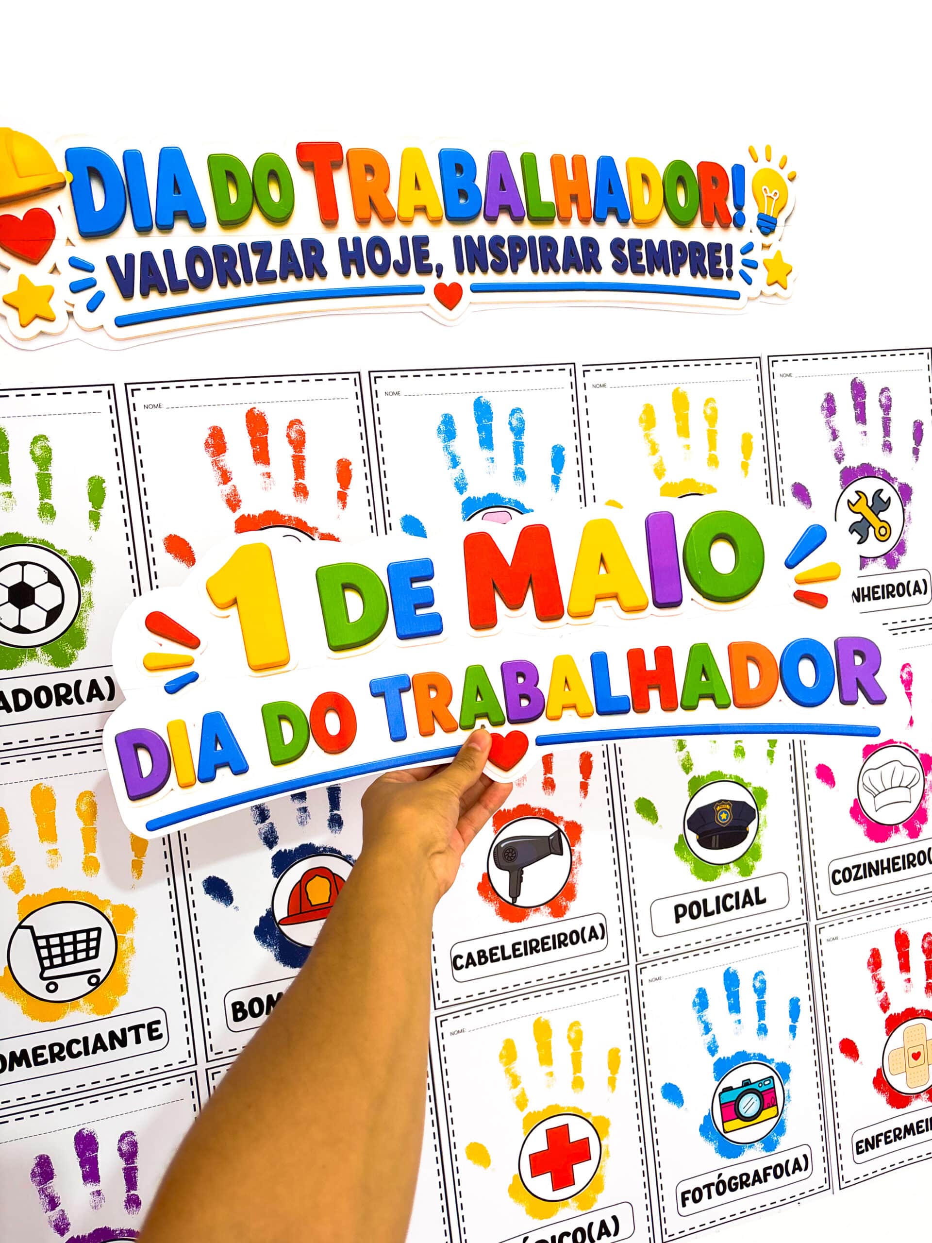 👷♀️ Atividade Dia do Trabalhador – Mãozinhas Proposta simples e significativa para trabalhar o Dia do Trabalhador de forma lúdica e afetiva. As crianças exploram diferentes profissões enquanto deixam sua marca com as mãozinhas, criando um material cheio de sentido. ✨ O que você recebe ✔ 30 profissões prontas ✔ Versão em branco para criação ✔ Atividade com pintura das mãos ✔ Letreiro completo para painel 💡 Ideal para ✔ Trabalhar profissões na Educação Infantil ✔ Estimular criatividade e expressão ✔ Promover rodas de conversa ✔ Montar painel para exposição 📄 PDF | Não editável | Pronto para impressão 📚 47 páginas 💰 R$ 6,00 Uma atividade prática, afetiva e perfeita para valorizar o trabalho da turma.