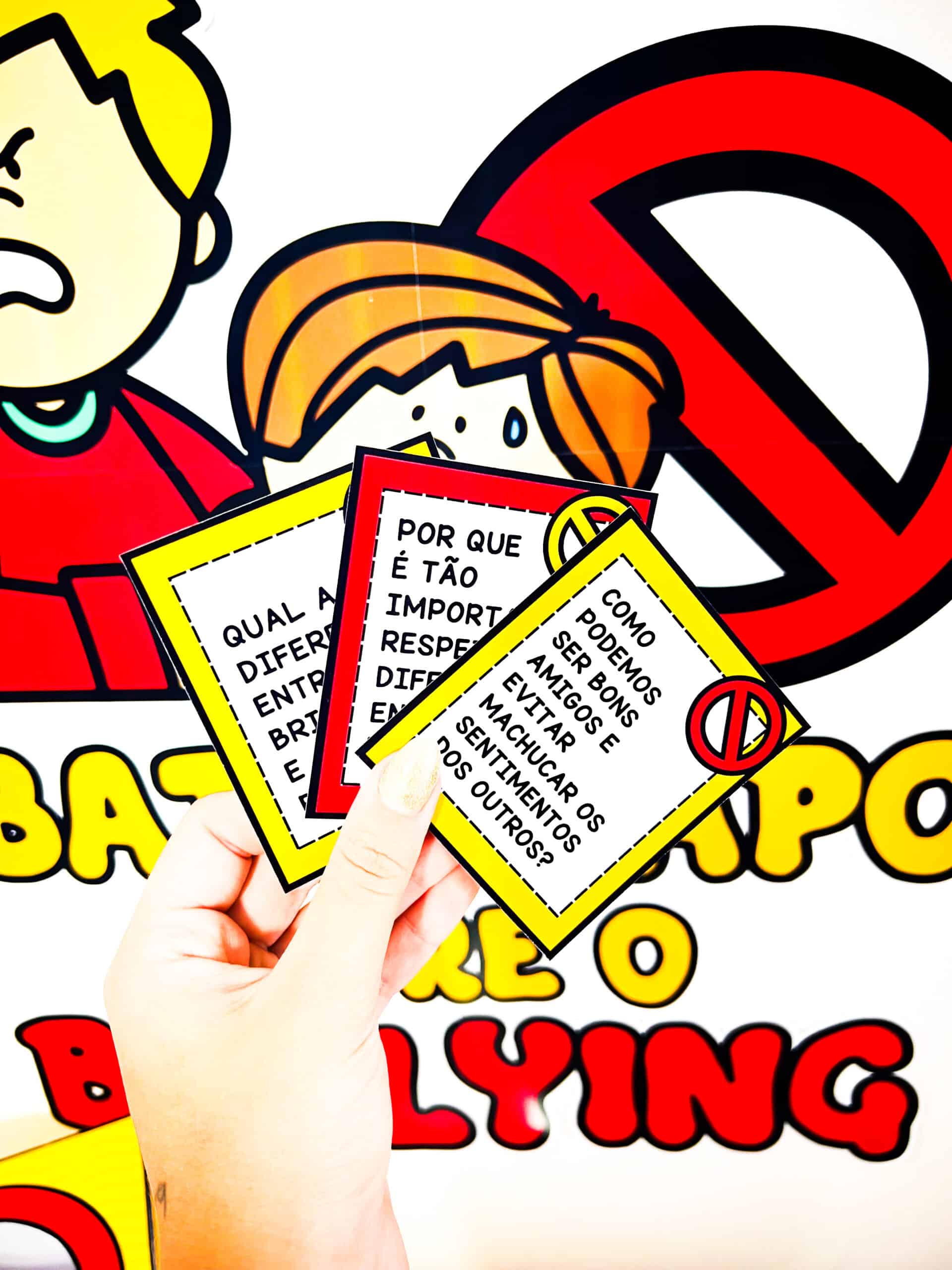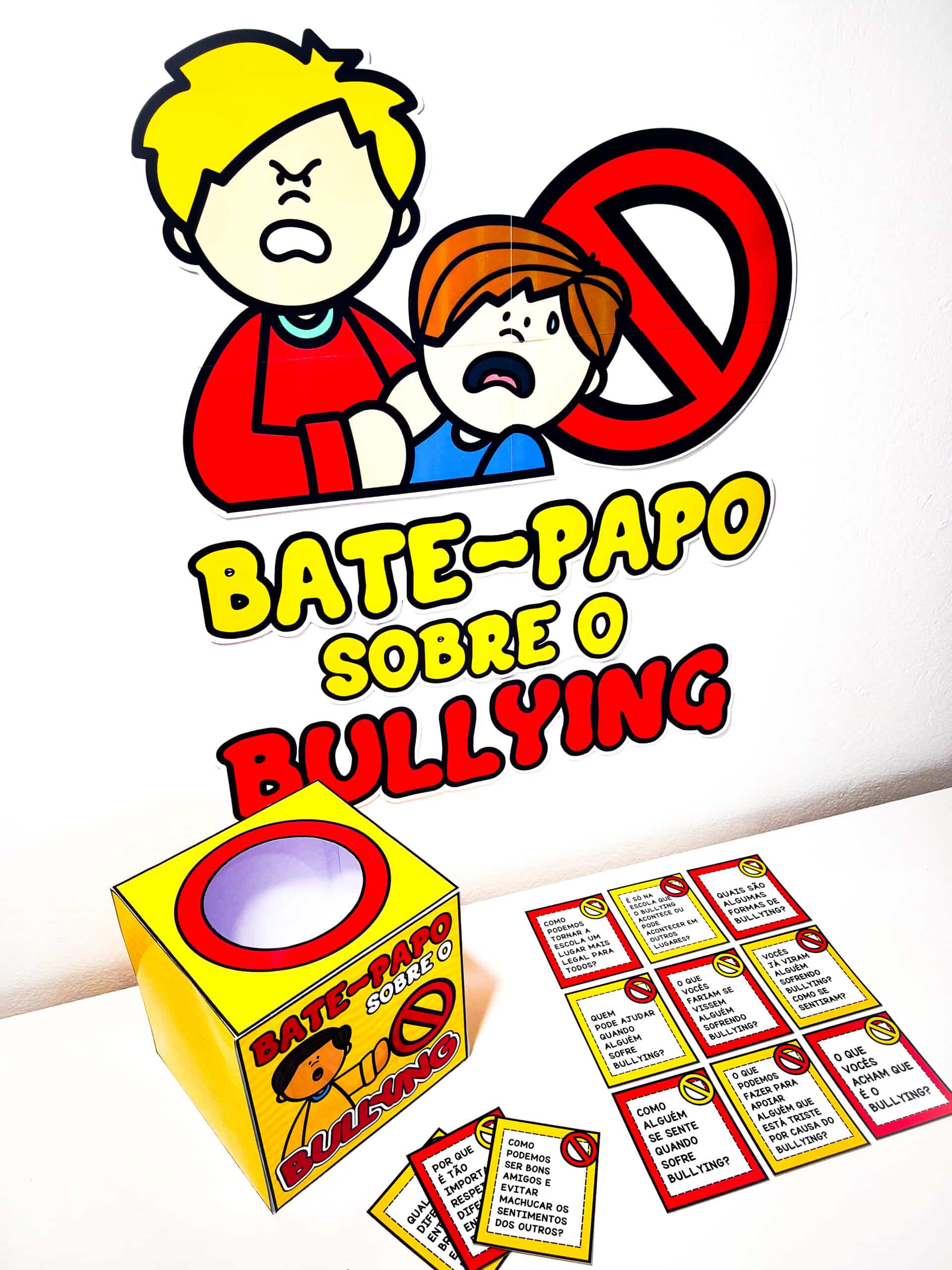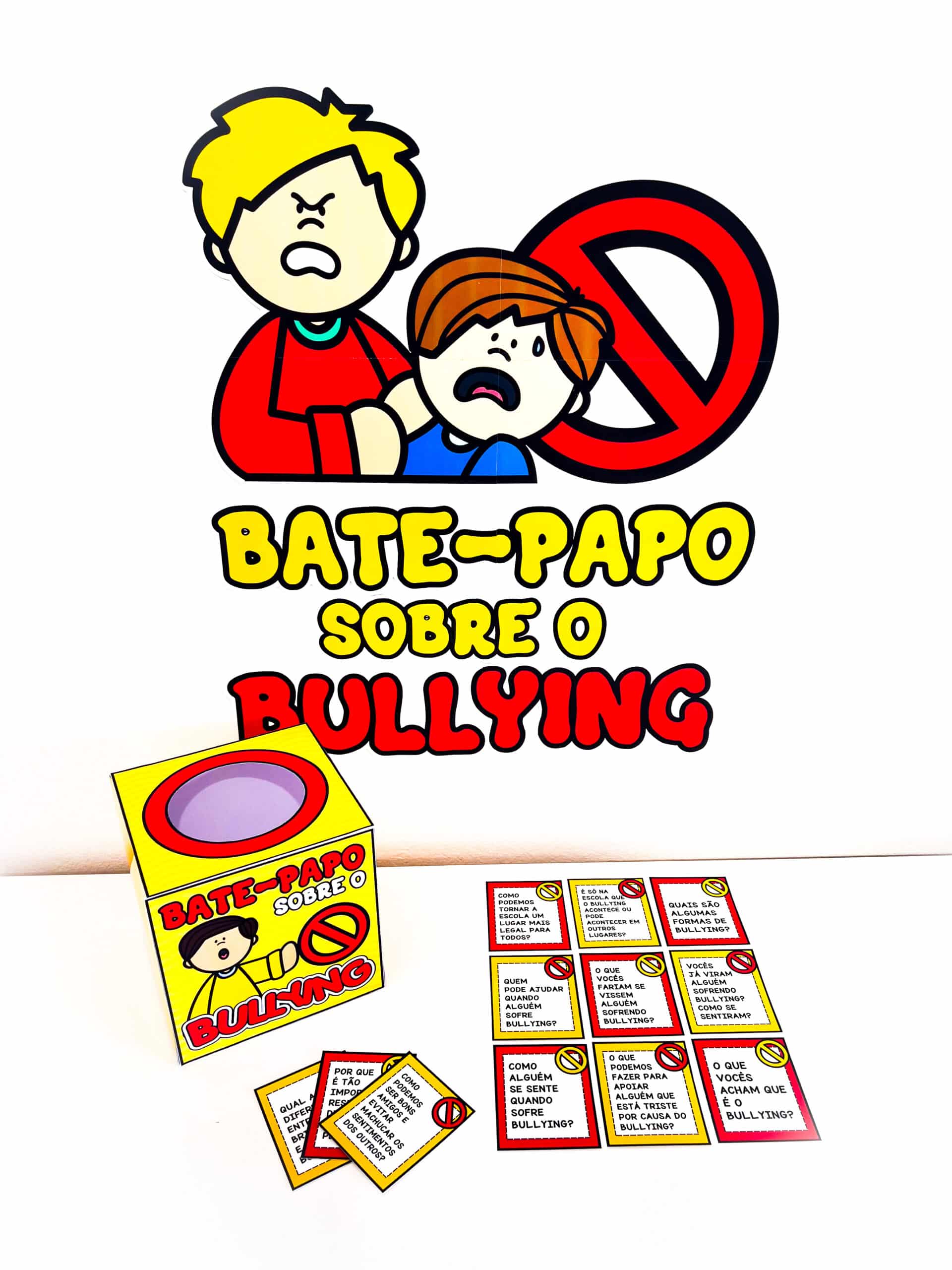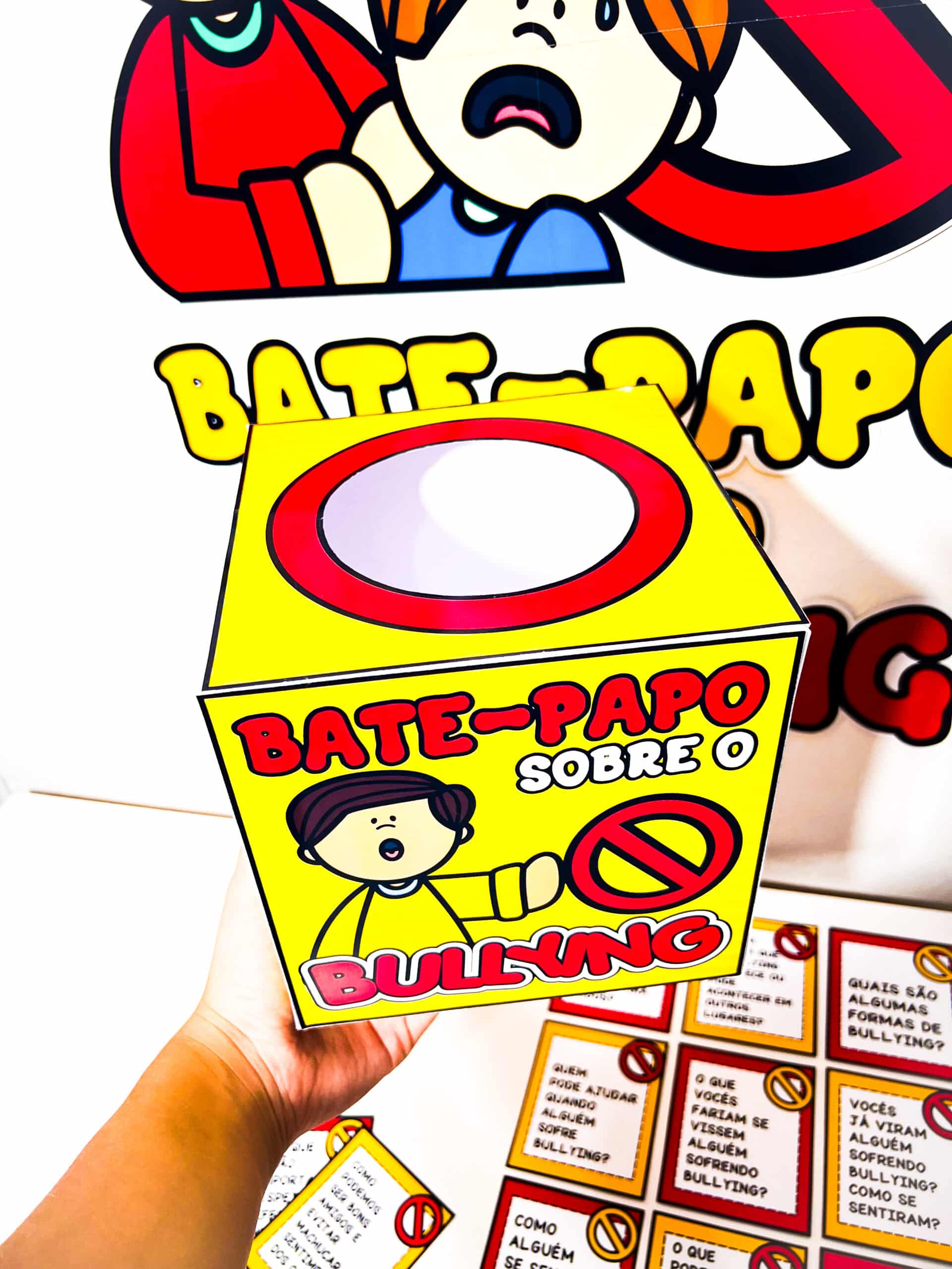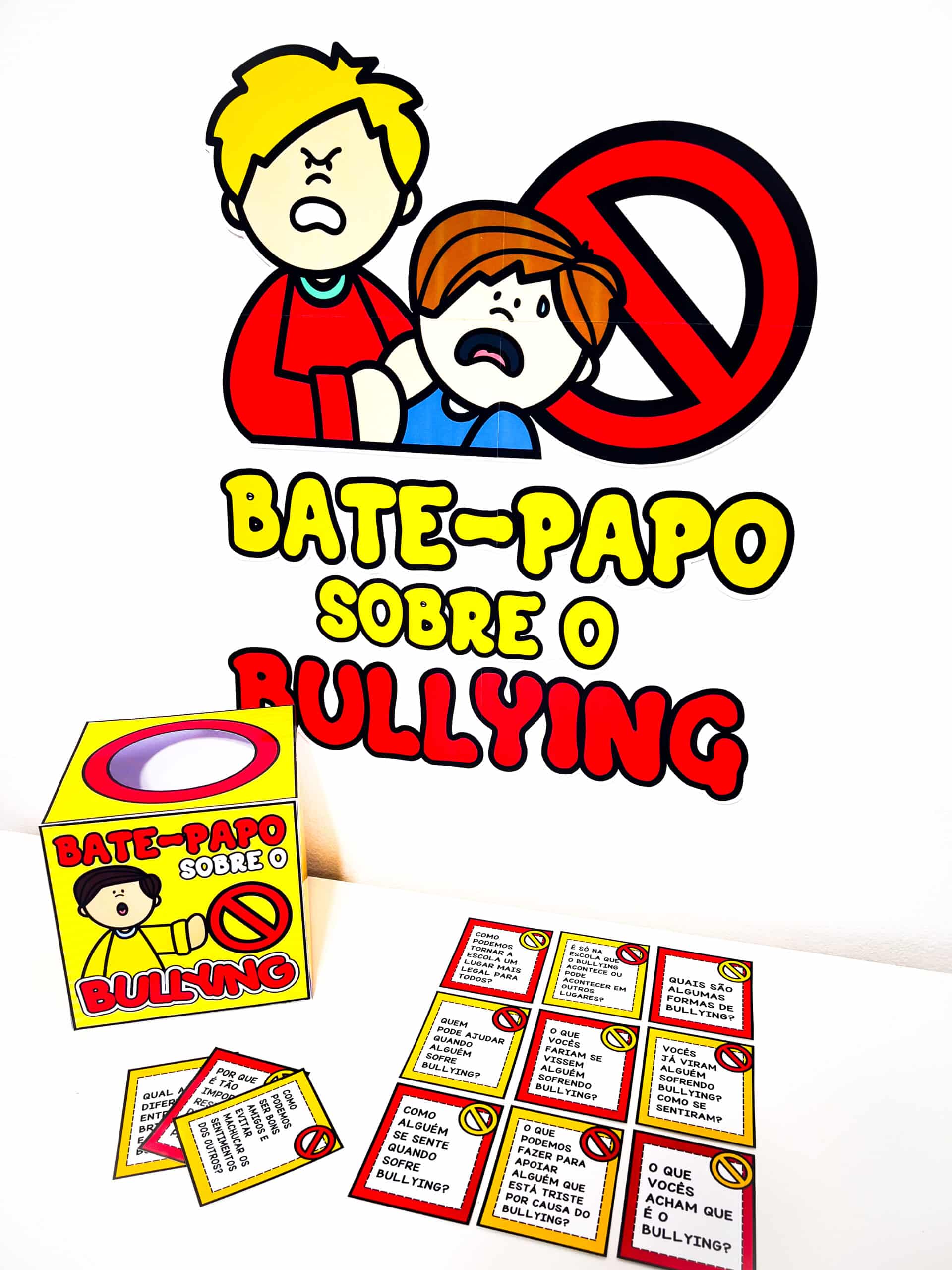 💬 Bate-Papo sobre Bullying Recurso dinâmico para trabalhar o Dia Nacional de Combate ao Bullying (7 de abril) com participação ativa dos alunos. Uma proposta interativa que estimula reflexão, opiniões e diálogo sobre respeito e convivência. ✨ O que você recebe ✔ Painel (6 folhas) ✔ Molde de caixinha ✔ 12 perguntas para discussão 💡 Ideal para ✔ Rodas de conversa ✔ Trabalhar bullying e convivência ✔ Estimular reflexão e argumentação ✔ Aulas participativas 📄 PDF | Não editável | Pronto para impressão Um material simples e envolvente para promover diálogo e conscientização em sala.