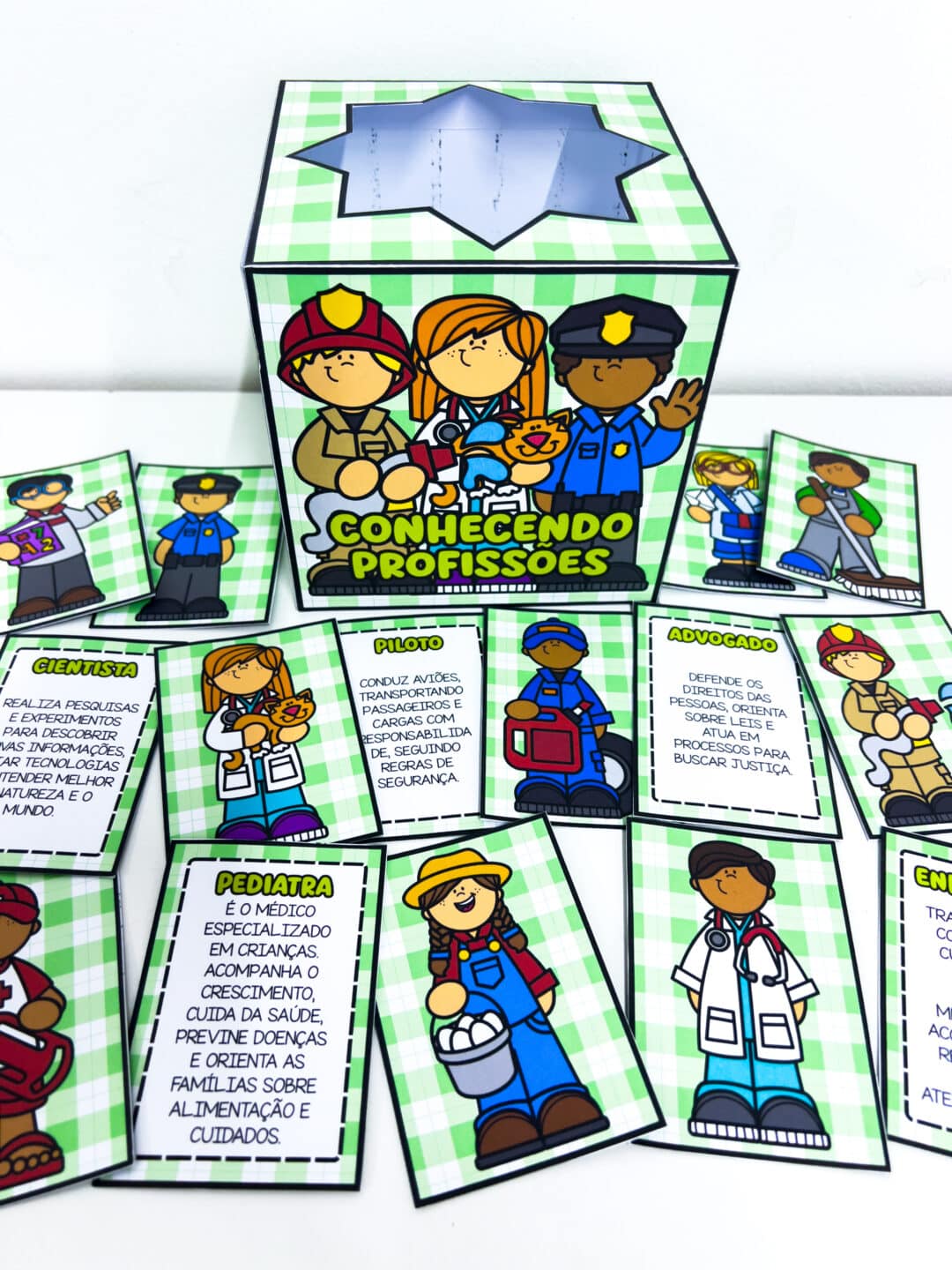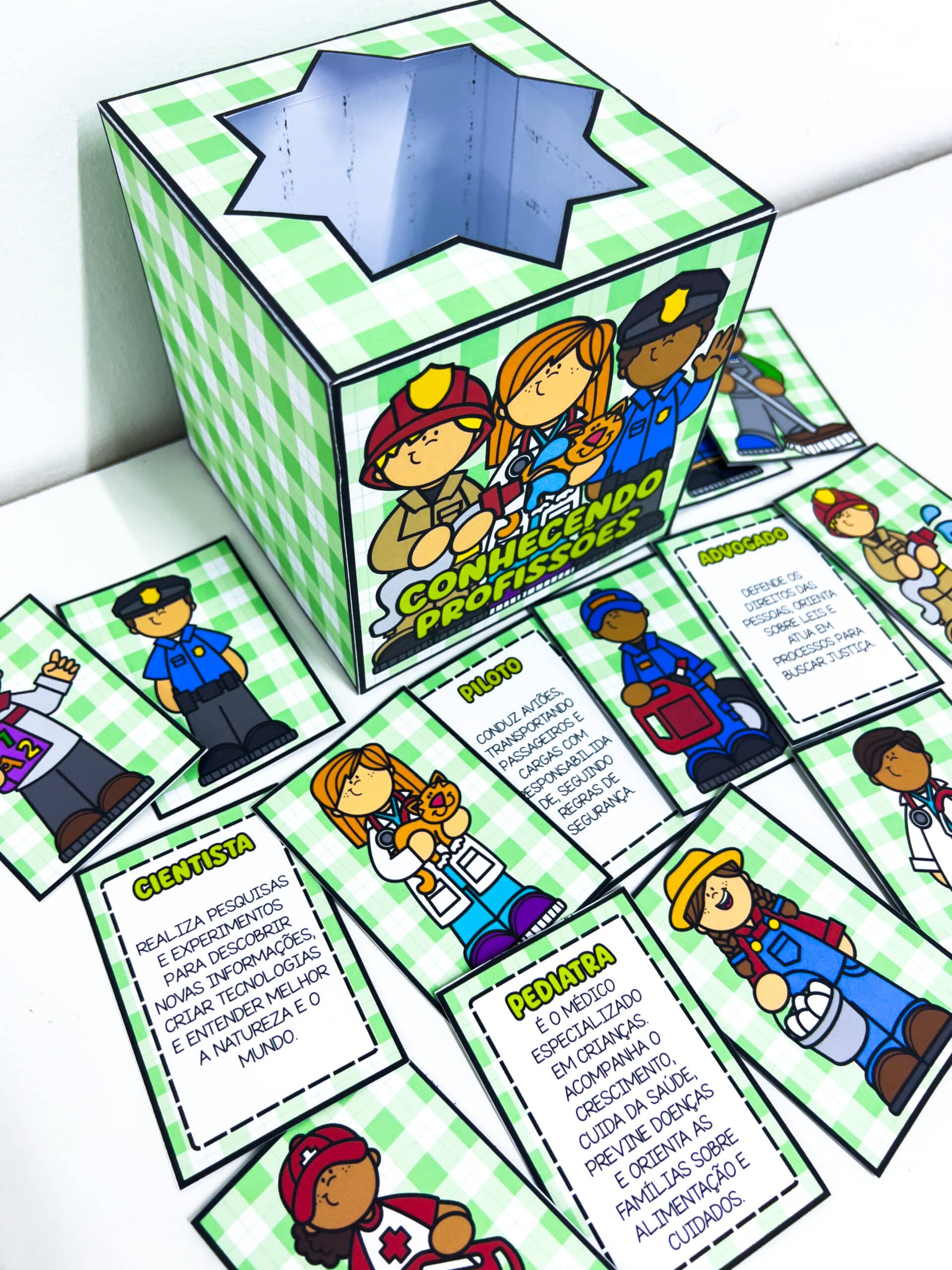👷♀️ Caixa Conhecendo as Profissões Recurso lúdico para apresentar profissões e suas funções de forma visual e interativa. A criança explora, observa e relaciona cada profissão com seu papel no dia a dia. ✨ O que você recebe ✔ Caixa organizadora para montagem ✔ 15 fichas ilustradas de profissões ✔ Material pronto para uso 💡 Ideal para ✔ Trabalhar profissões e funções ✔ Ampliar vocabulário ✔ Desenvolver oralidade ✔ Estimular conhecimento de mundo 📄 PDF | Não editável | Pronto para impressão 📚 7 páginas 💰 R$ 7,00 Um recurso prático e envolvente para aprender sobre o mundo do trabalho.
