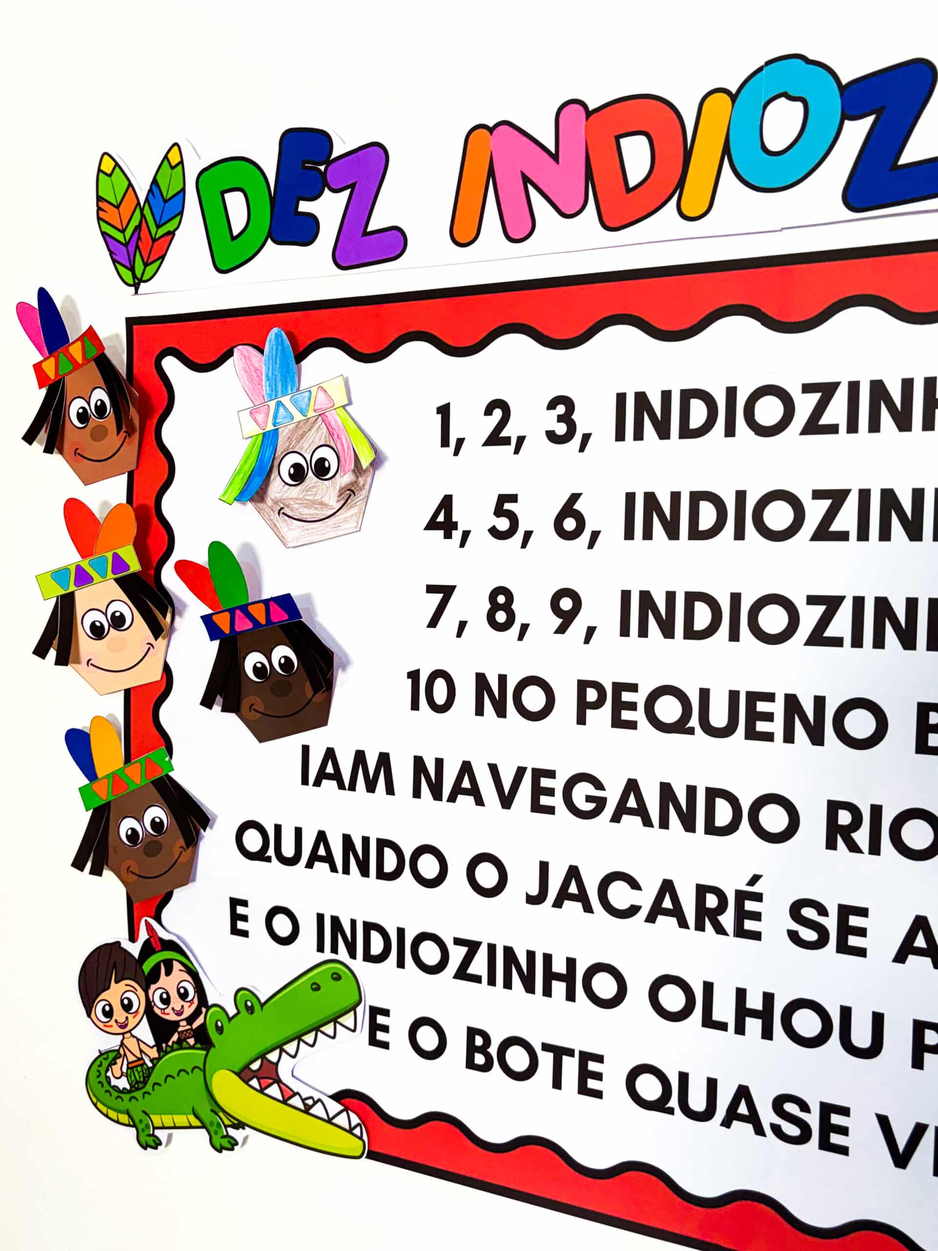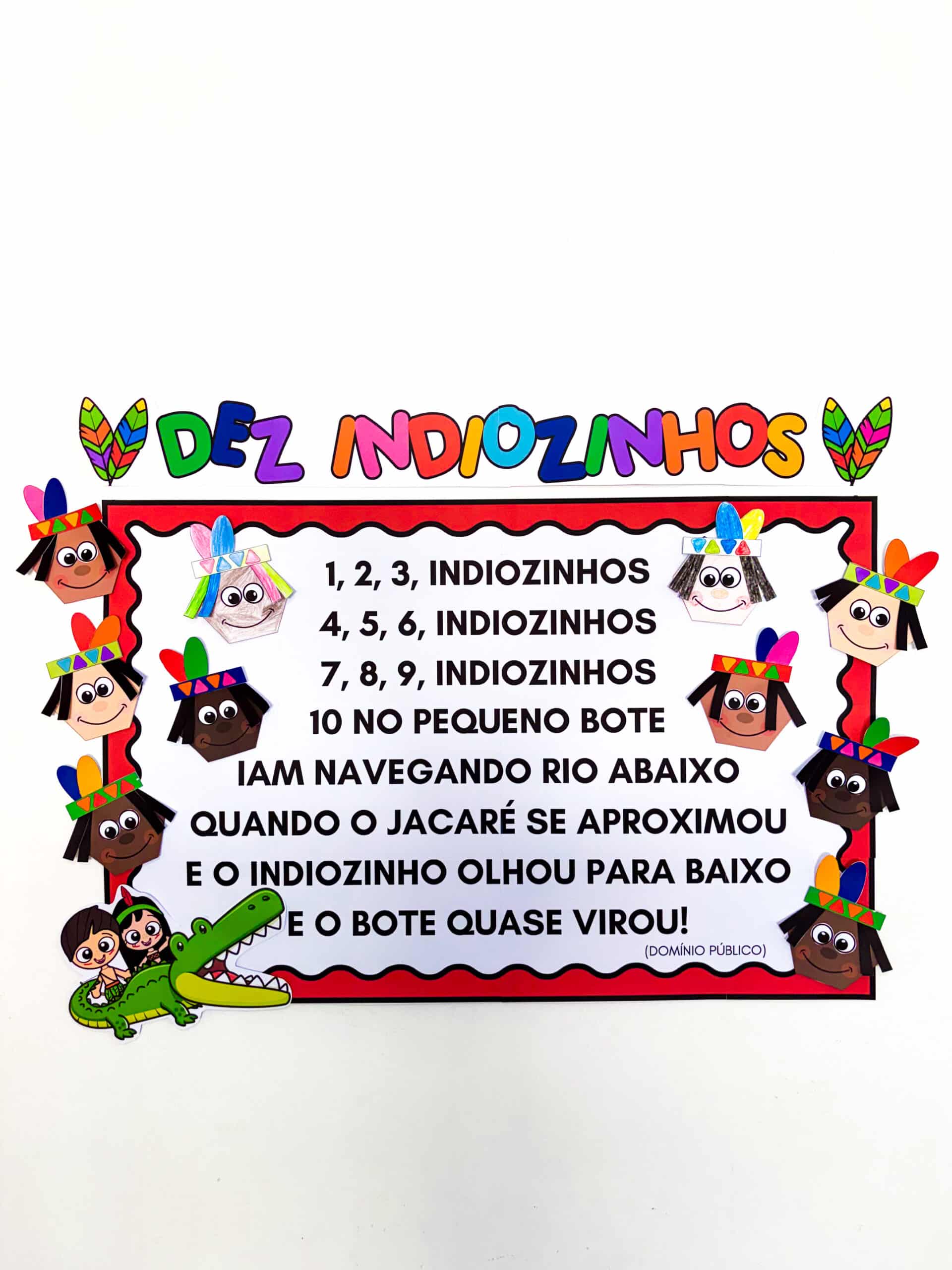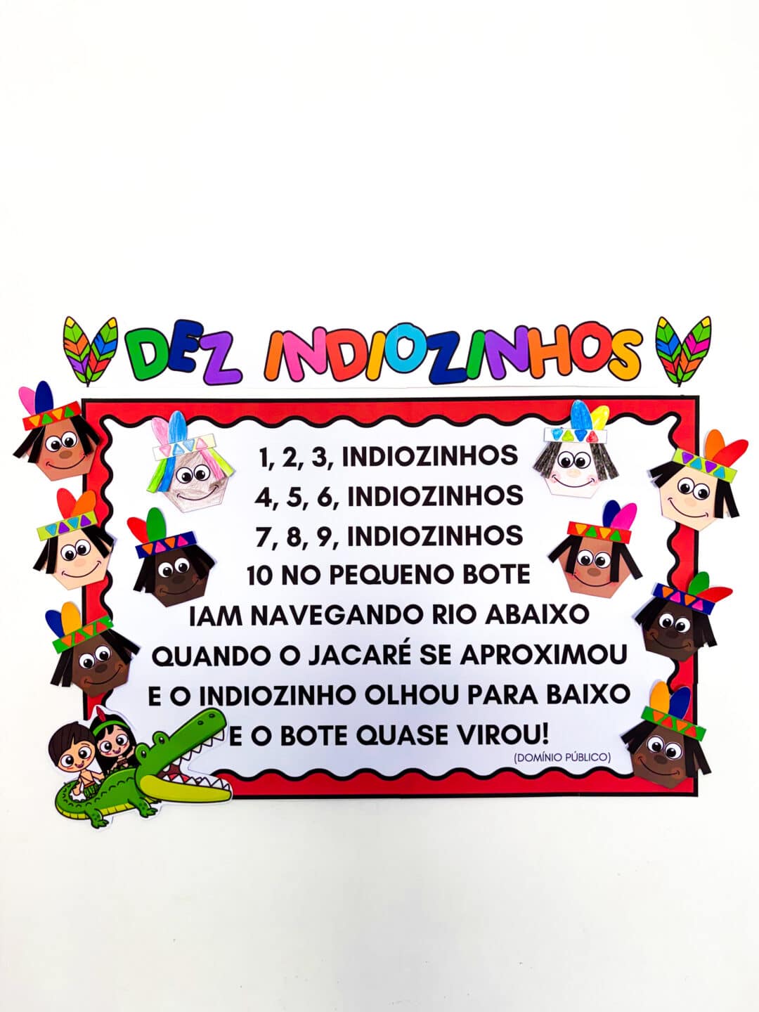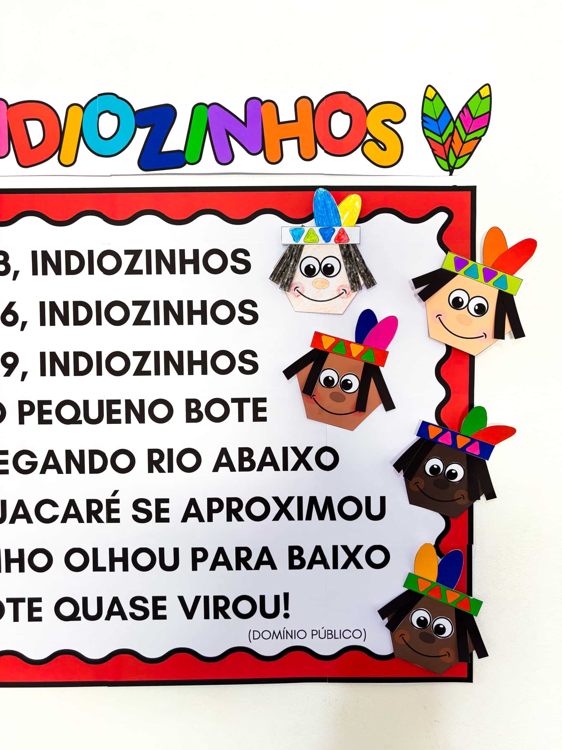 🪶 Cantiga “10 Indiozinhos” – Cartaz + Atividade Interativa Material pensado para transformar a cantiga em aprendizagem ativa e participativa. Ideal para o Dia dos Povos Indígenas, envolvendo a turma com música, interação e construção coletiva. ✨ O que você recebe ✔ Cartaz ampliado da cantiga ✔ Letreiro para acompanhamento da leitura ✔ Atividade interativa (montagem dos indiozinhos) ✔ Material pronto para uso em grupo 💡 Ideal para ✔ Trabalhar contagem de 1 a 10 ✔ Desenvolver sequência numérica ✔ Estimular oralidade, ritmo e memorização ✔ Promover participação e pertencimento 📄 PDF | Não editável | Pronto para impressão 📚 26 páginas Uma proposta prática que transforma a cantiga em experiência de aprendizagem real.