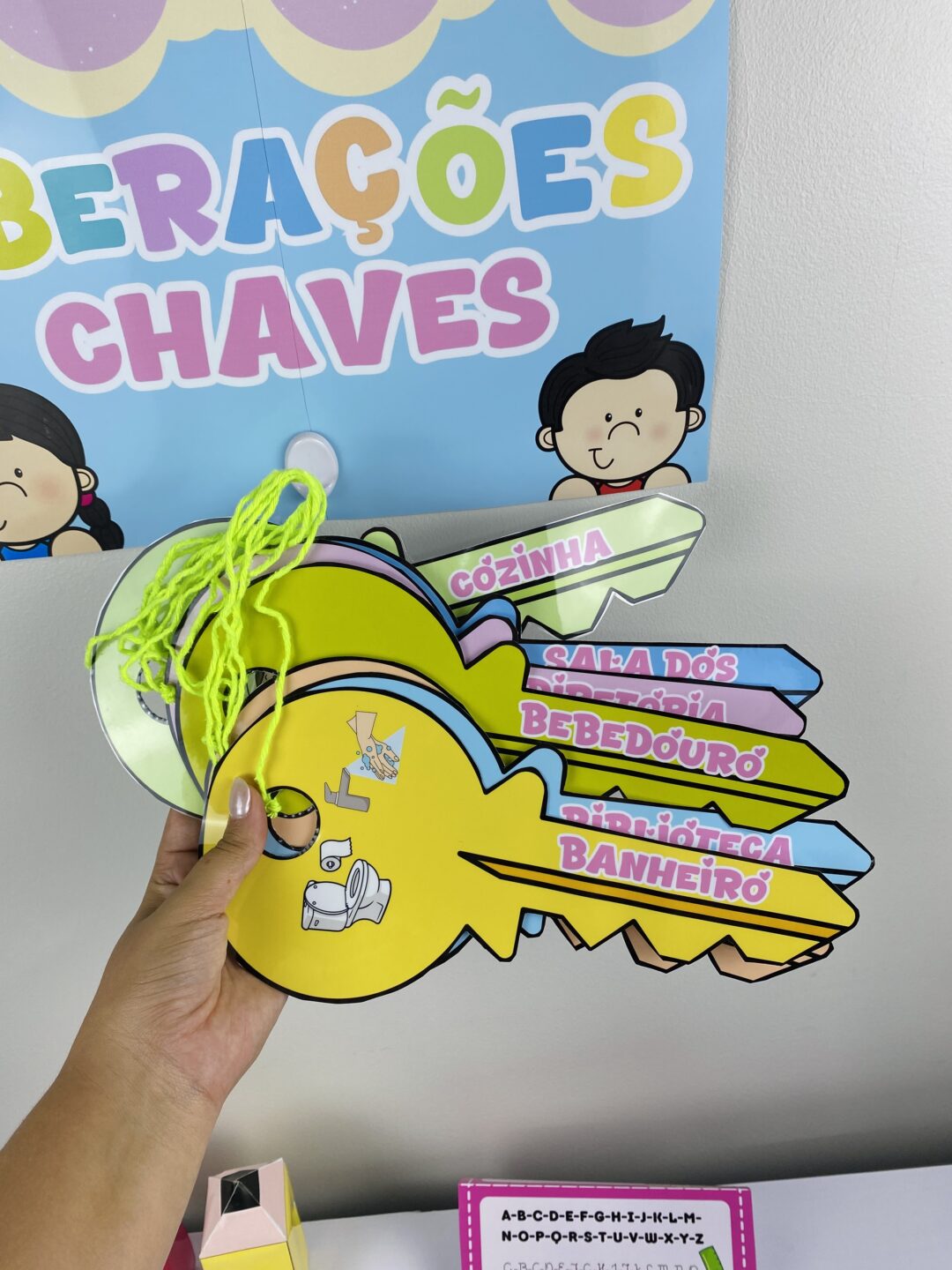 Atividade Interativa para Sala de Aula Chegou um material lúdico e super divertido para organizar a rotina escolar de forma leve e encantadora! As crianças vão amar “liberar” as chaves enquanto aprendem sobre os ambientes da escola e combinados do dia a dia! ✅ Você recebe: 🔑 Chaves coloridas e ampliadas 📍 Locais inclusos: cozinha, sala dos professores, diretoria, bebedouro, coordenação, biblioteca e banheiro 🎯 Ideal para trabalhar: rotina, organização, regras e autonomia 📌 Perfeito para Educação Infantil e 1º ano!
