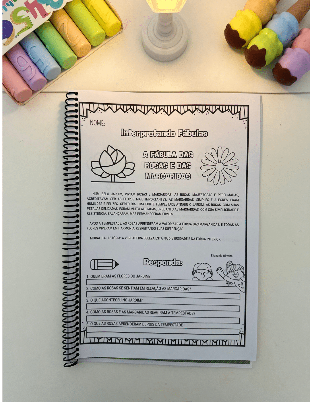 ⭐Apostila Interpretando Fábulas com 18 páginas de atividades ara colorir. ⭐São propostas de Fábulas ilustradas com perguntas de interpretação, ideal para crianças em fase de Alfabetização. ⭐O material vai em PDF pronto para impressão. Não editável.