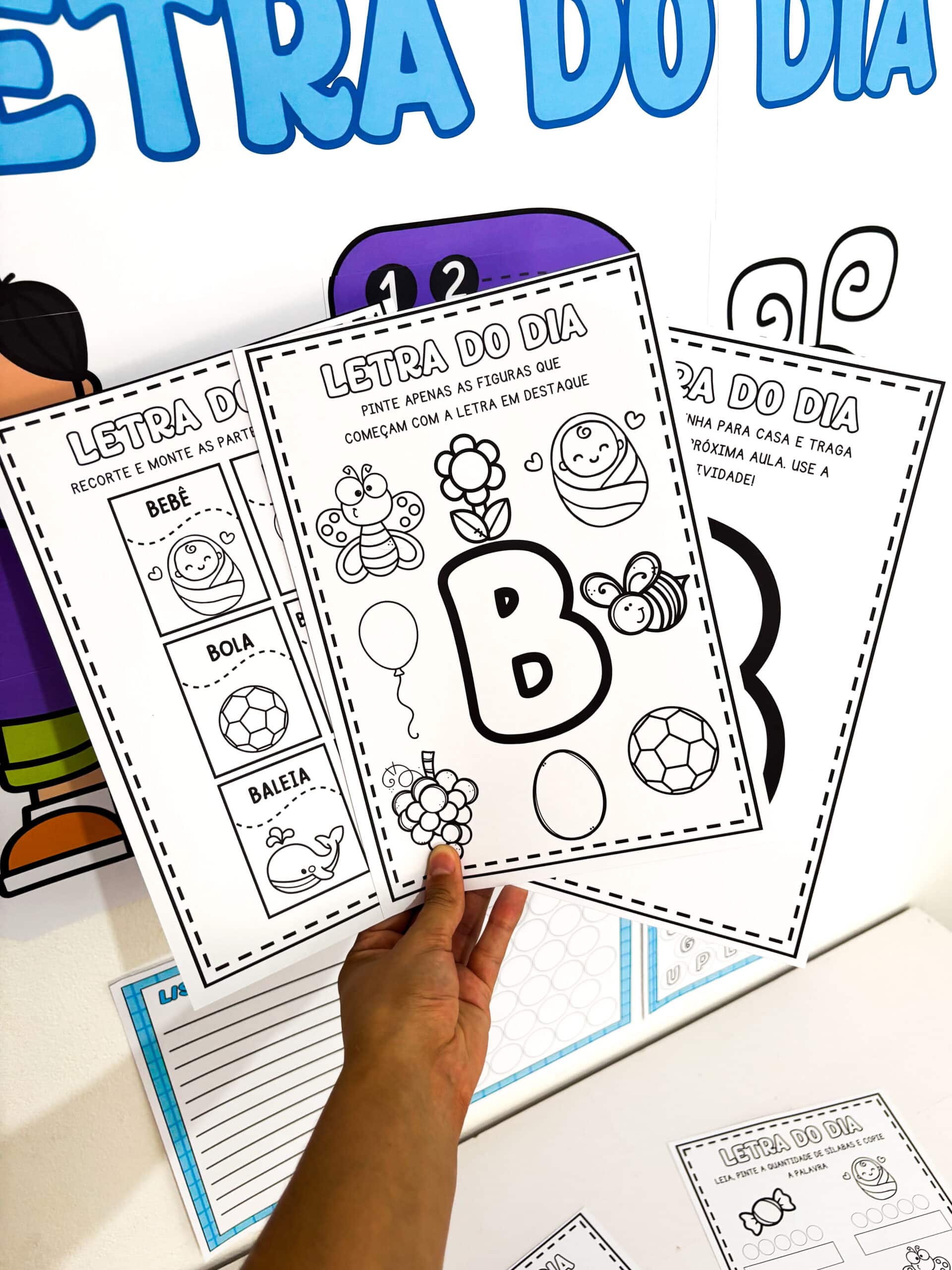 🔤 Kit Letra B Material completo para trabalhar a letra B de forma lúdica, organizada e com intencionalidade pedagógica. Uma proposta que envolve a turma, facilita sua aula e torna a aprendizagem mais significativa. ✨ O que você recebe ✔ Luva com versinho + cards ilustrados ✔ Painel de traçado ✔ Cartazes para atividades coletivas ✔ Coroas (colorida e para colorir) ✔ Plaquinha “Já sei a letra B” ✔ Plaquinhas articulatórias + sons ✔ Lata da família silábica ✔ 4 atividades de fixação ✔ Material interativo (poema + variações da letra) ✔ Lembrancinha com massinha 💡 Ideal para ✔ Trabalhar reconhecimento da letra e sons ✔ Desenvolver coordenação motora ✔ Ampliar vocabulário ✔ Envolver a família no processo 📄 PDF | Não editável | Pronto para impressão 📚 48 páginas Um recurso prático que organiza sua aula e fortalece a alfabetização.