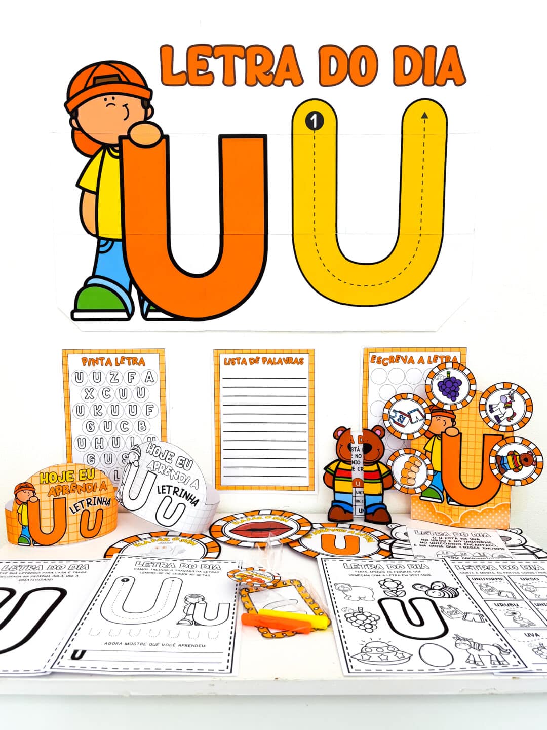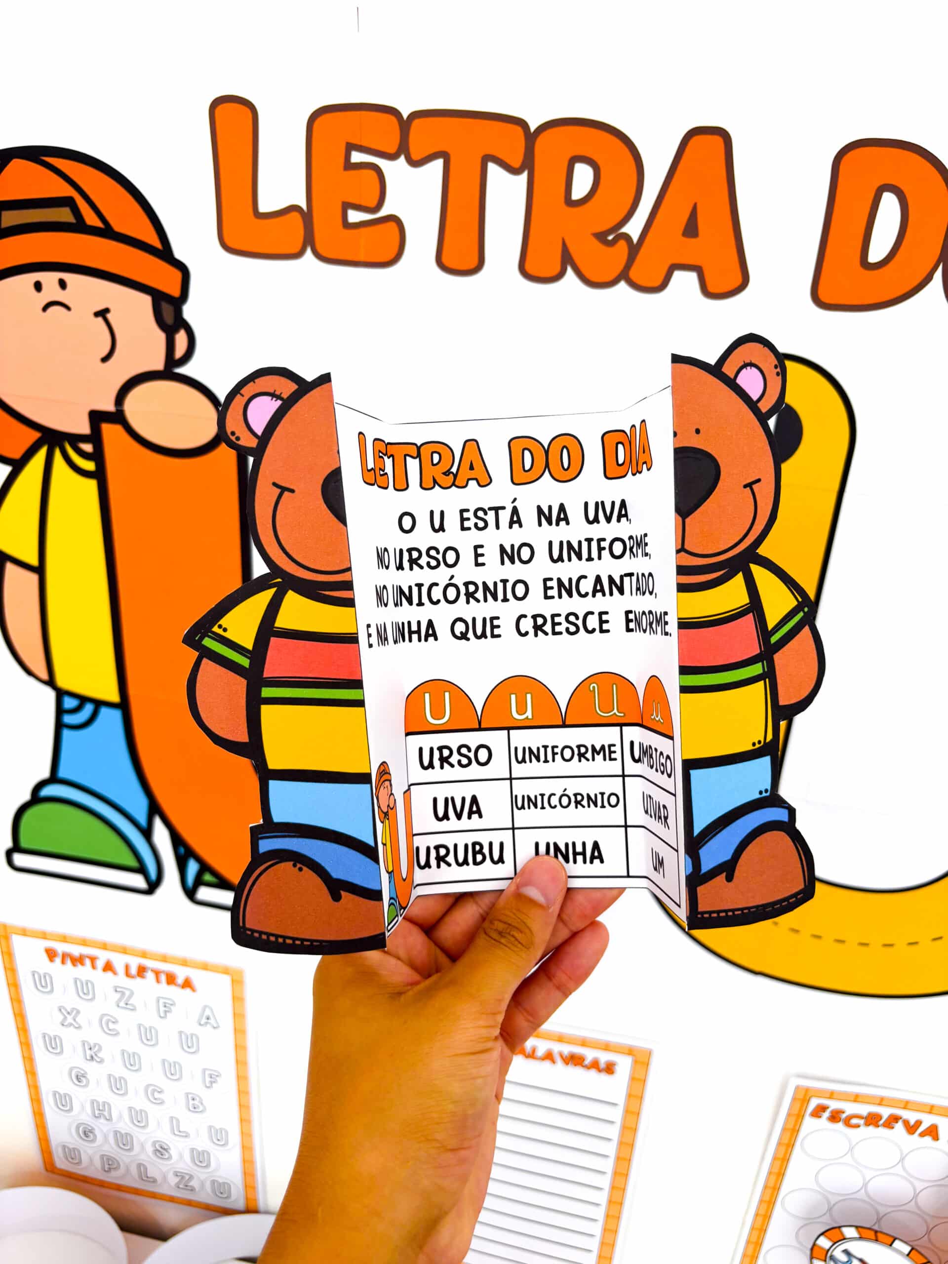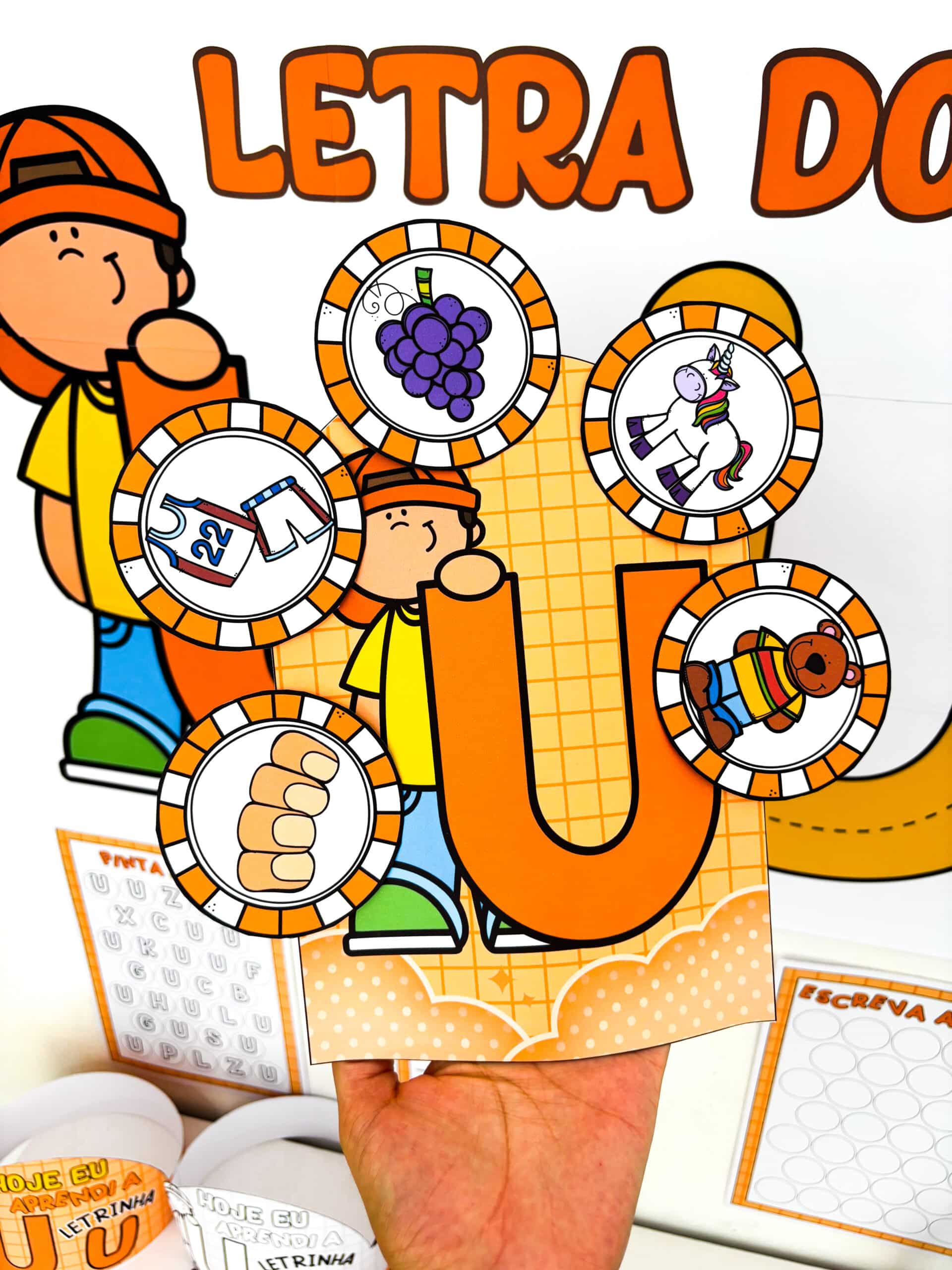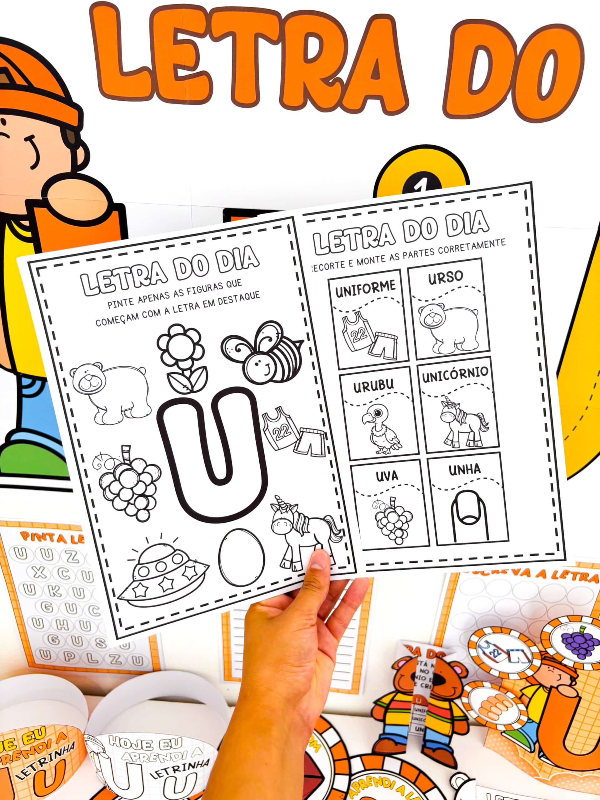 🔤 Kit Letra U Material completo para trabalhar a letra U de forma lúdica, organizada e com intencionalidade pedagógica. Uma proposta que envolve a criança, facilita sua aula e torna a aprendizagem mais significativa. ✨ O que você recebe ✔ Luva com poema + cards ilustrados ✔ Painel de traçado ✔ Cartazes (pinte, escreva e palavras) ✔ Coroa (colorida e para colorir) ✔ Plaquinha “Eu aprendi” ✔ Plaquinhas da boquinha ✔ 4 atividades de fixação ✔ Ficha literária interativa ✔ Lembrancinha com massinha 💡 Ideal para ✔ Trabalhar reconhecimento da letra e sons ✔ Desenvolver coordenação motora ✔ Estimular linguagem e vocabulário ✔ Envolver a família no processo 📄 PDF | Não editável | Pronto para impressão 📚 44 páginas Um recurso prático que organiza sua aula e fortalece o processo de alfabetização.