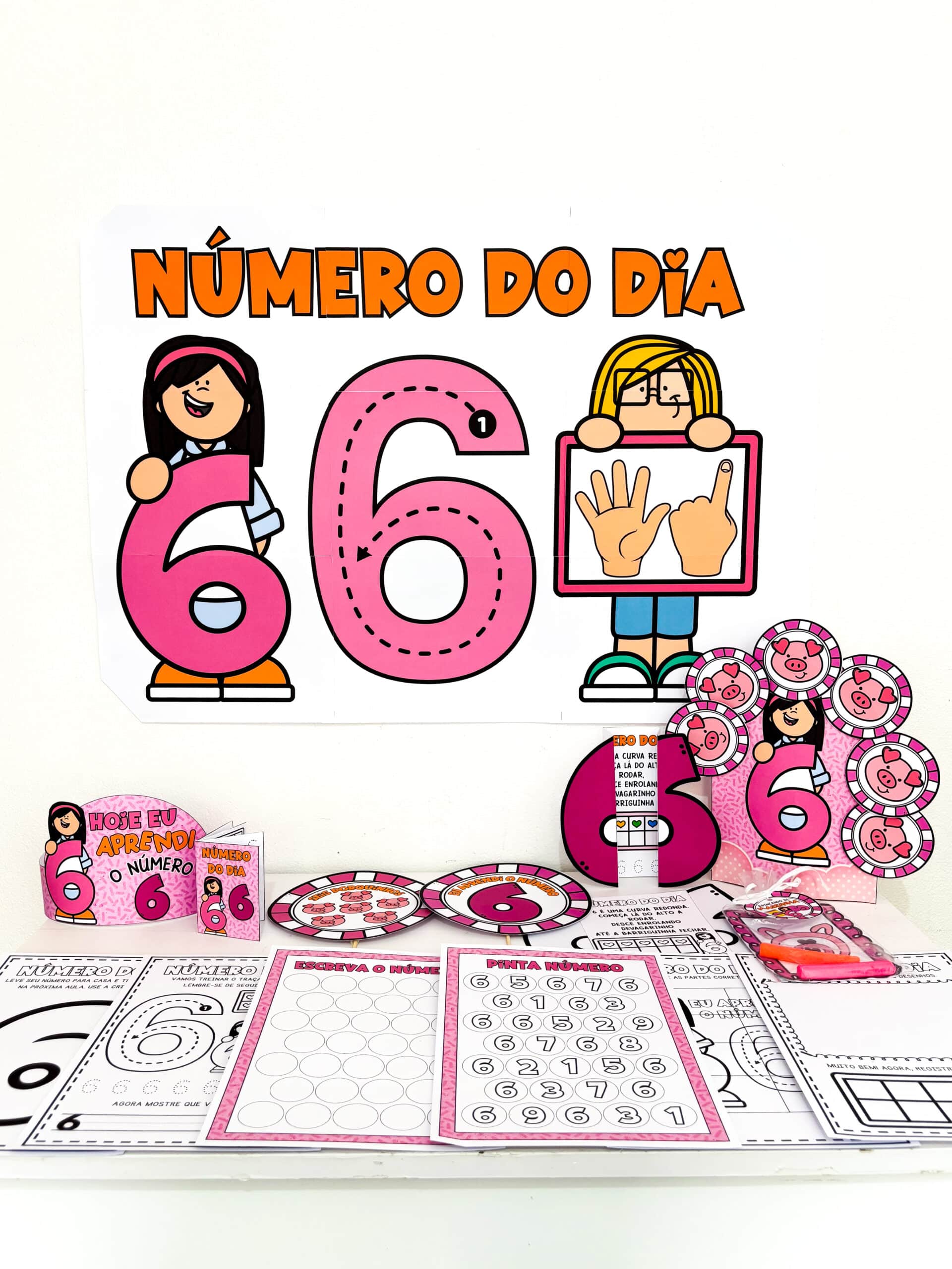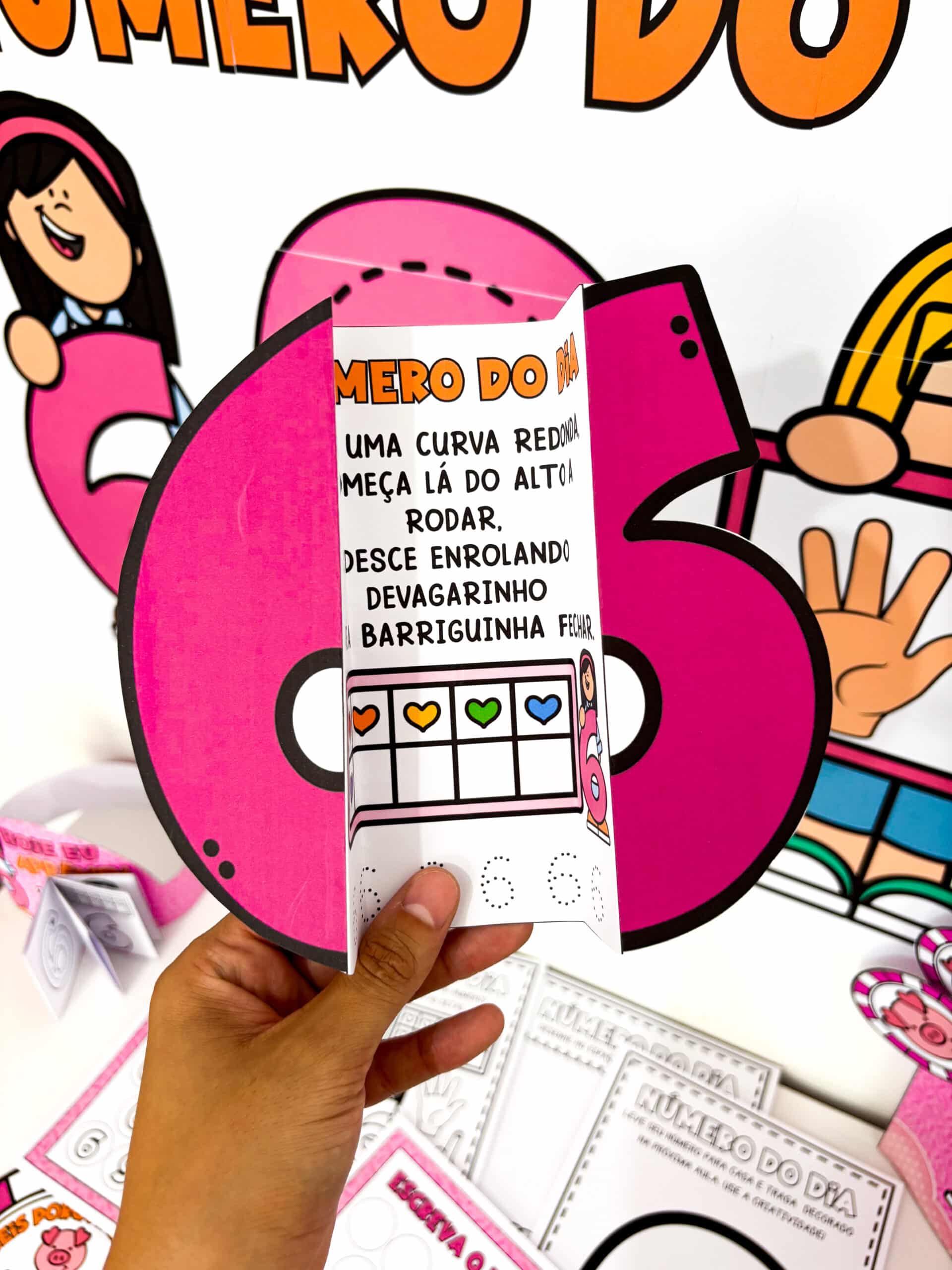 🔢 Kit Número 6 – Número do Dia Material completo para trabalhar o número 6 de forma lúdica, organizada e significativa. A criança compreende quantidade, associa número × elementos e pratica o traçado enquanto aprende brincando. ✨ O que você recebe ✔ Painel “Número do Dia” ✔ Número interativo (poema + quantidade + traçado) ✔ Luva interativa + cards ✔ Cartazes (pinte, escreva e explore o número) ✔ Coroa (colorida e para colorir) ✔ Atividades de fixação ✔ Fichas de massinha ✔ Plaquinhas para foto ✔ Lembrancinha pedagógica 💡 Ideal para ✔ Trabalhar número e quantidade ✔ Desenvolver coordenação motora ✔ Organizar sua rotina matemática ✔ Tornar a aprendizagem mais envolvente 📄 PDF | Não editável | Pronto para impressão 📚 43 páginas Um recurso prático que facilita sua aula e fortalece a alfabetização matemática.