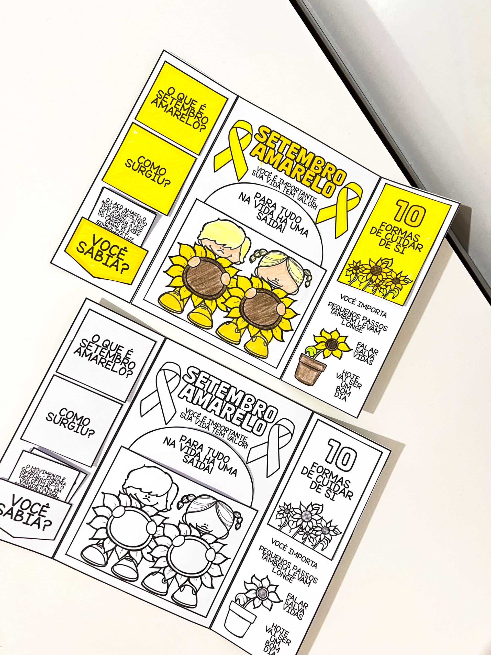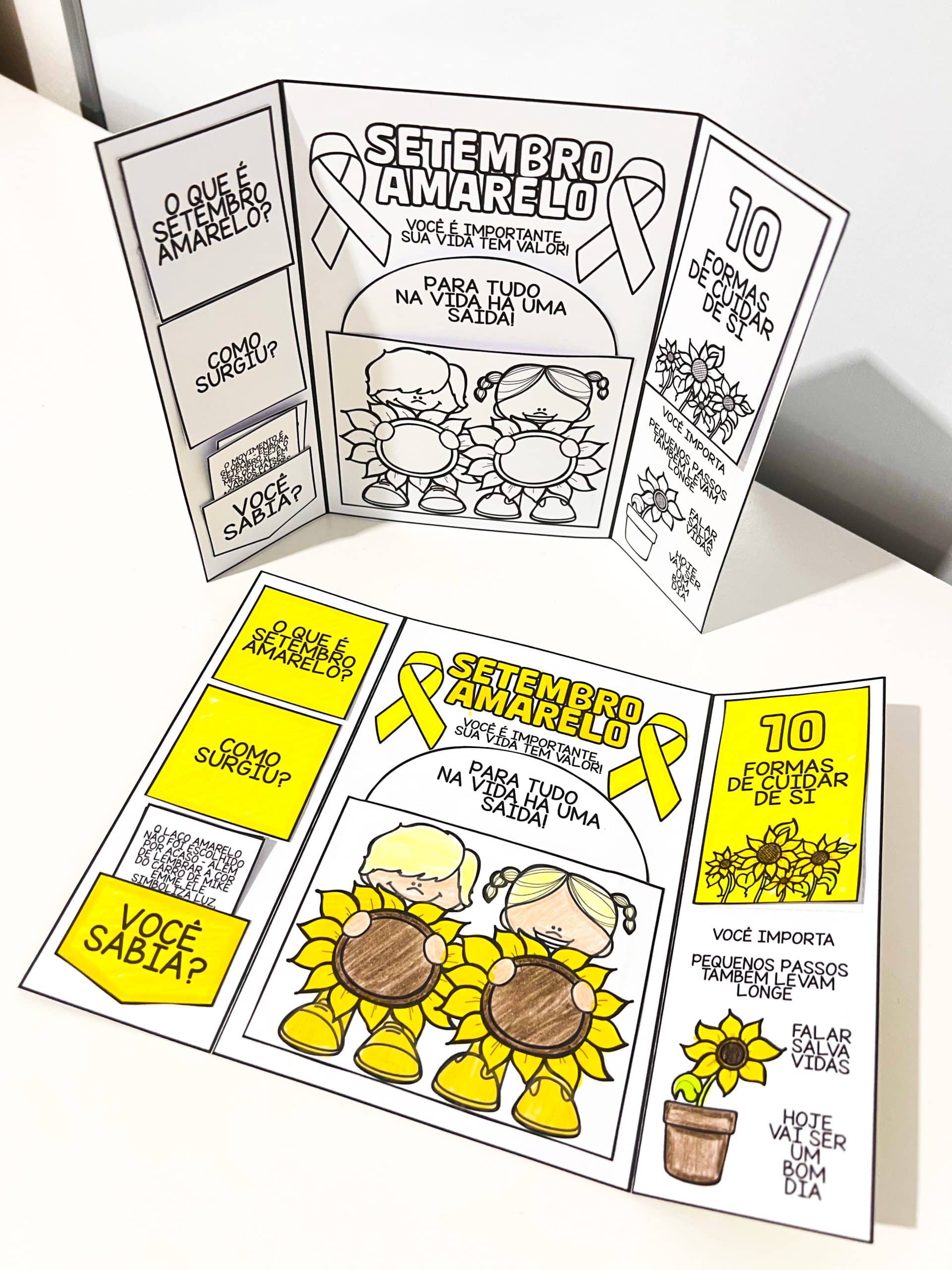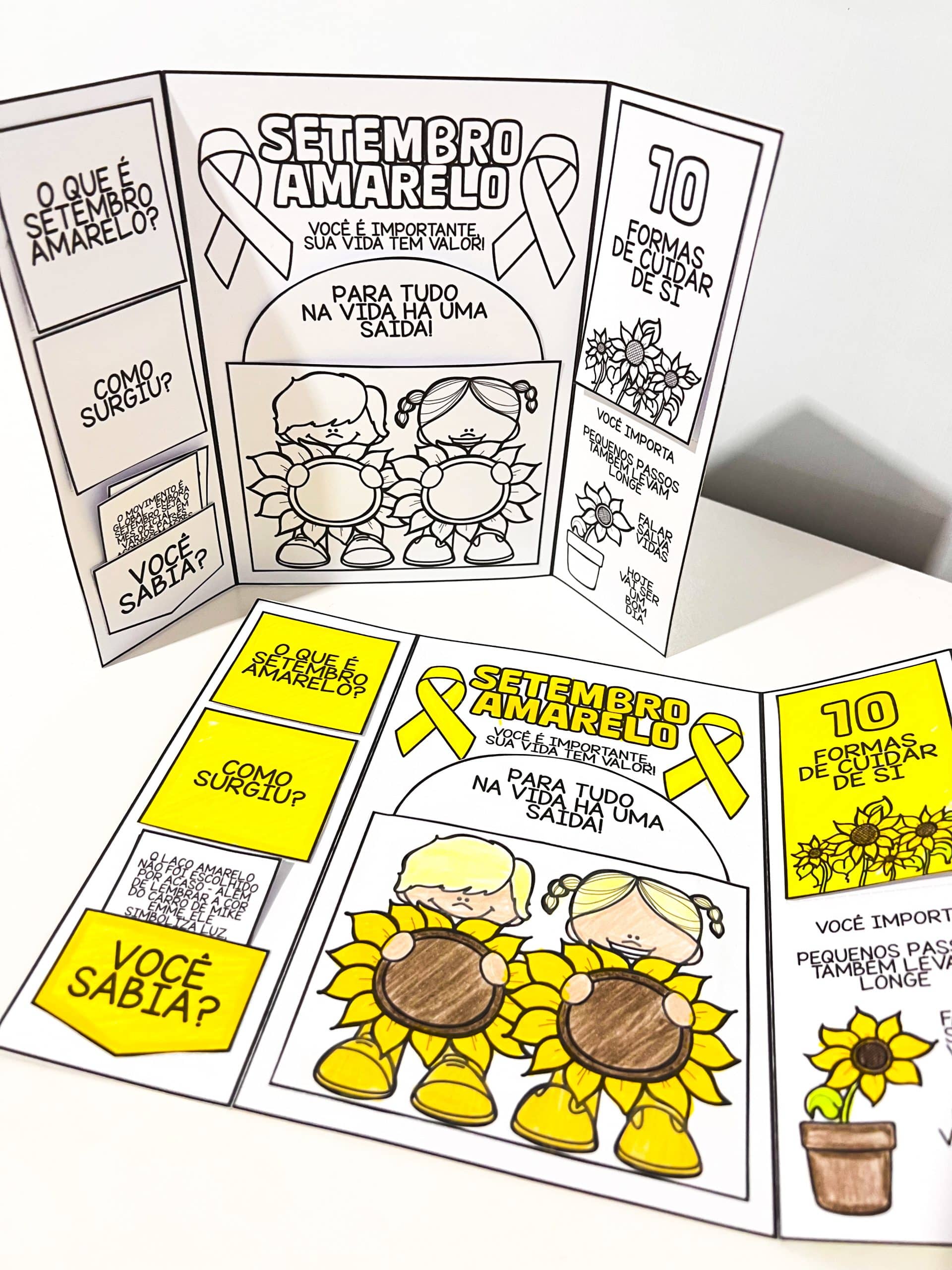 ⭐Lapbook – Setembro Amarelo ⭐Material educativo e interativo em formato dobrável, com abas e espaços personalizados para abordar temas relacionados à valorização da vida e à prevenção ao suicídio. ⭐Contém seções com informações sobre o Setembro Amarelo, sua origem, curiosidades, frases motivacionais e atividades reflexivas. ⭐Ideal para trabalhar o tema de forma lúdica e participativa, incentivando o diálogo, a conscientização e a expressão de sentimentos.