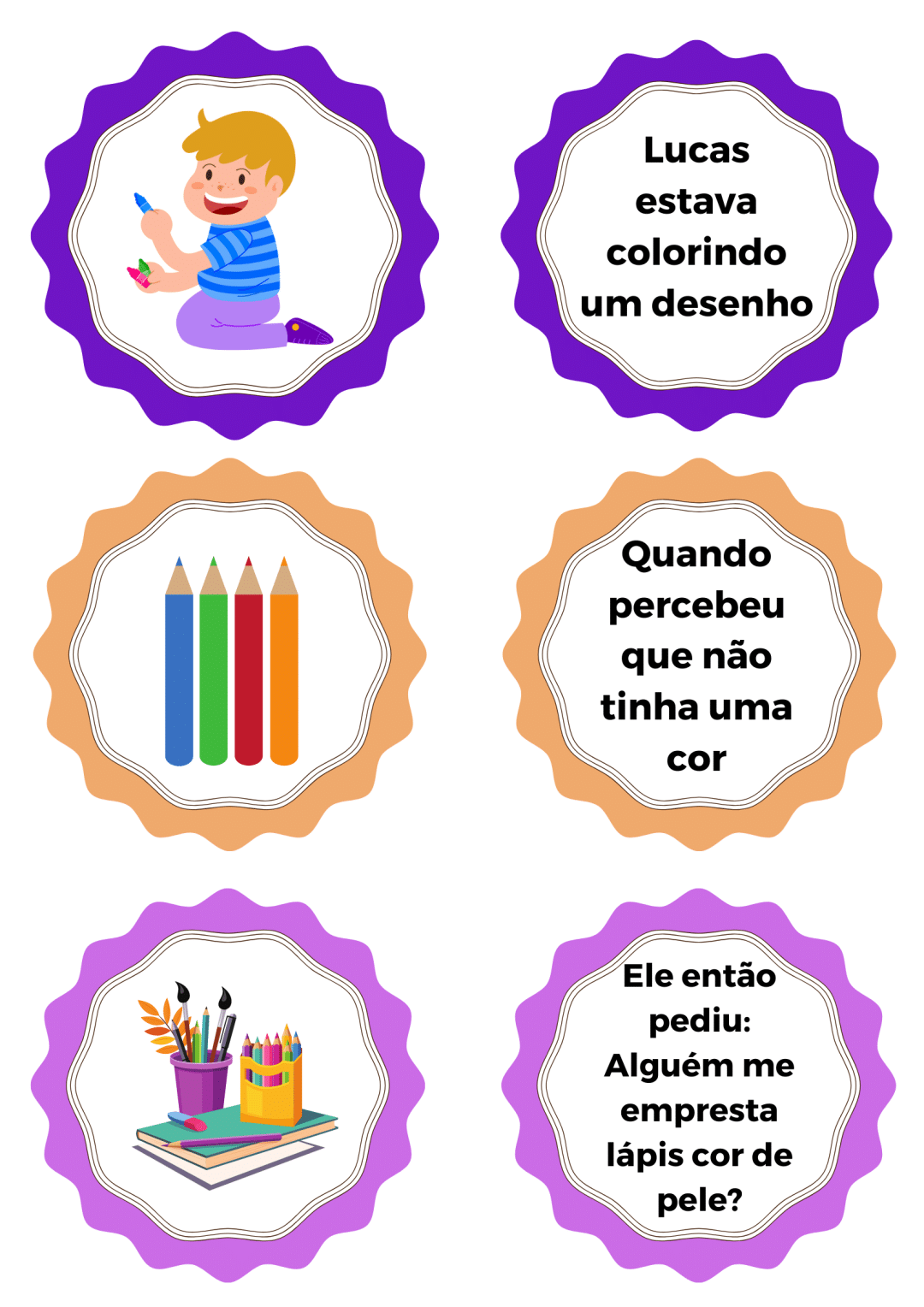 🖍️ Descrição da História Lucas adora desenhar e colorir, mas um dia se depara com uma situação curiosa: ao procurar o “lápis cor de pele”, percebe que muitas pessoas acreditam que existe apenas uma cor para representar a pele. Intrigado, ele começa a observar os colegas, a família e as pessoas ao seu redor, e descobre uma imensa variedade de tons e belezas. Com sensibilidade e curiosidade, Léo entende que não existe apenas um “cor de pele”, mas sim muitas cores que representam a diversidade e a riqueza de cada ser humano. ✨ Uma história simples, lúdica e cheia de significado, que ensina às crianças sobre respeito, identidade e valorização das diferenças.
