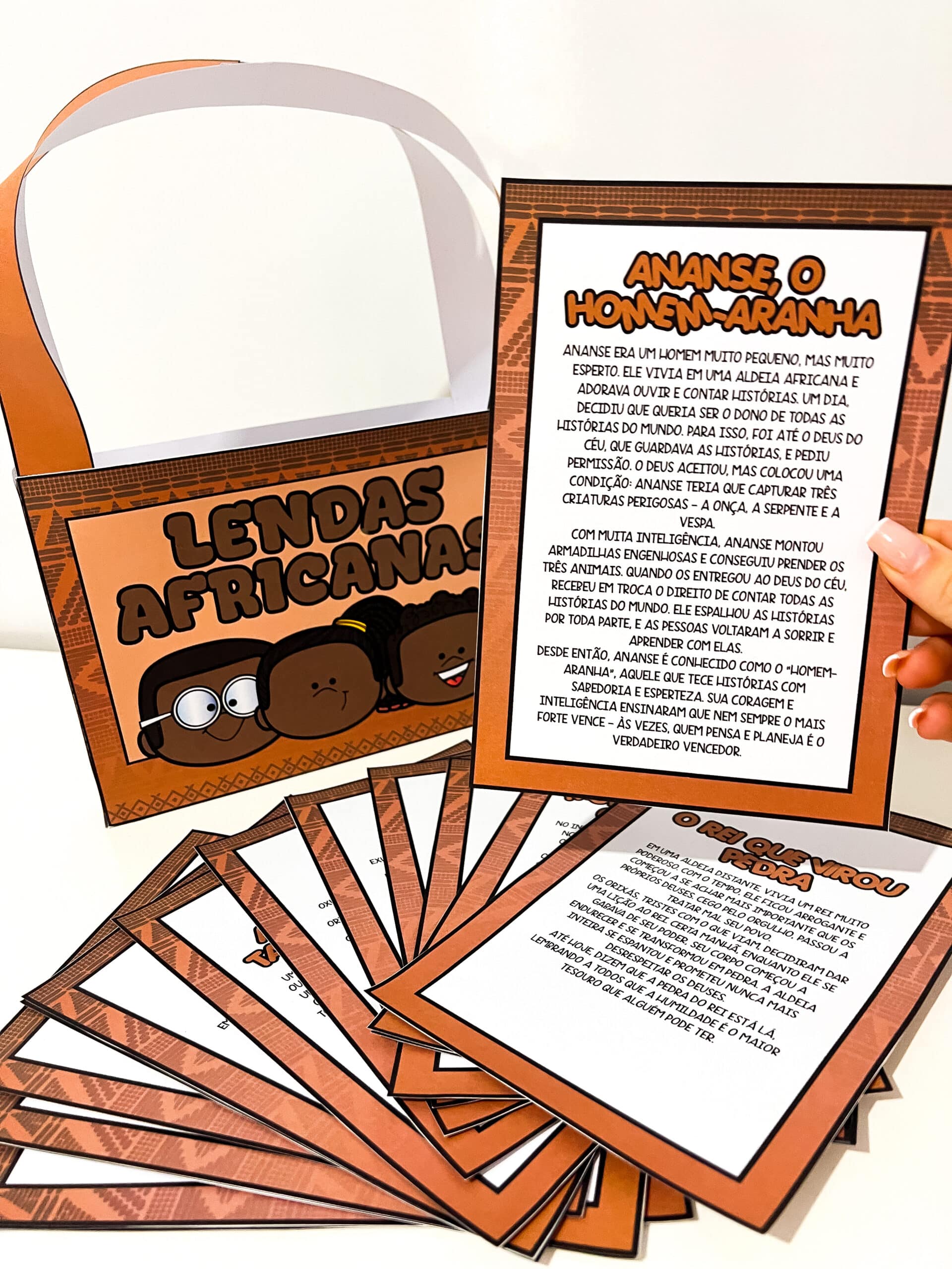 ⭐Maleta Lendas Africanas ⭐A Maleta Lendas Africanas é um material educativo voltado para o ensino da cultura africana e suas tradições orais. O recurso contém 15 lendas africanas, impressas em cartões ilustrados, com duas lendas por folha, totalizando um conjunto completo de histórias curtas e envolventes que valorizam a sabedoria, a ancestralidade e os valores transmitidos pelos povos africanos. ⭐Ideal para atividades de leitura, contação de histórias e projetos pedagógicos voltados à Consciência Negra e à valorização da diversidade cultural, este material promove o reconhecimento das raízes africanas presentes na formação da identidade brasileira de maneira lúdica e significativa.